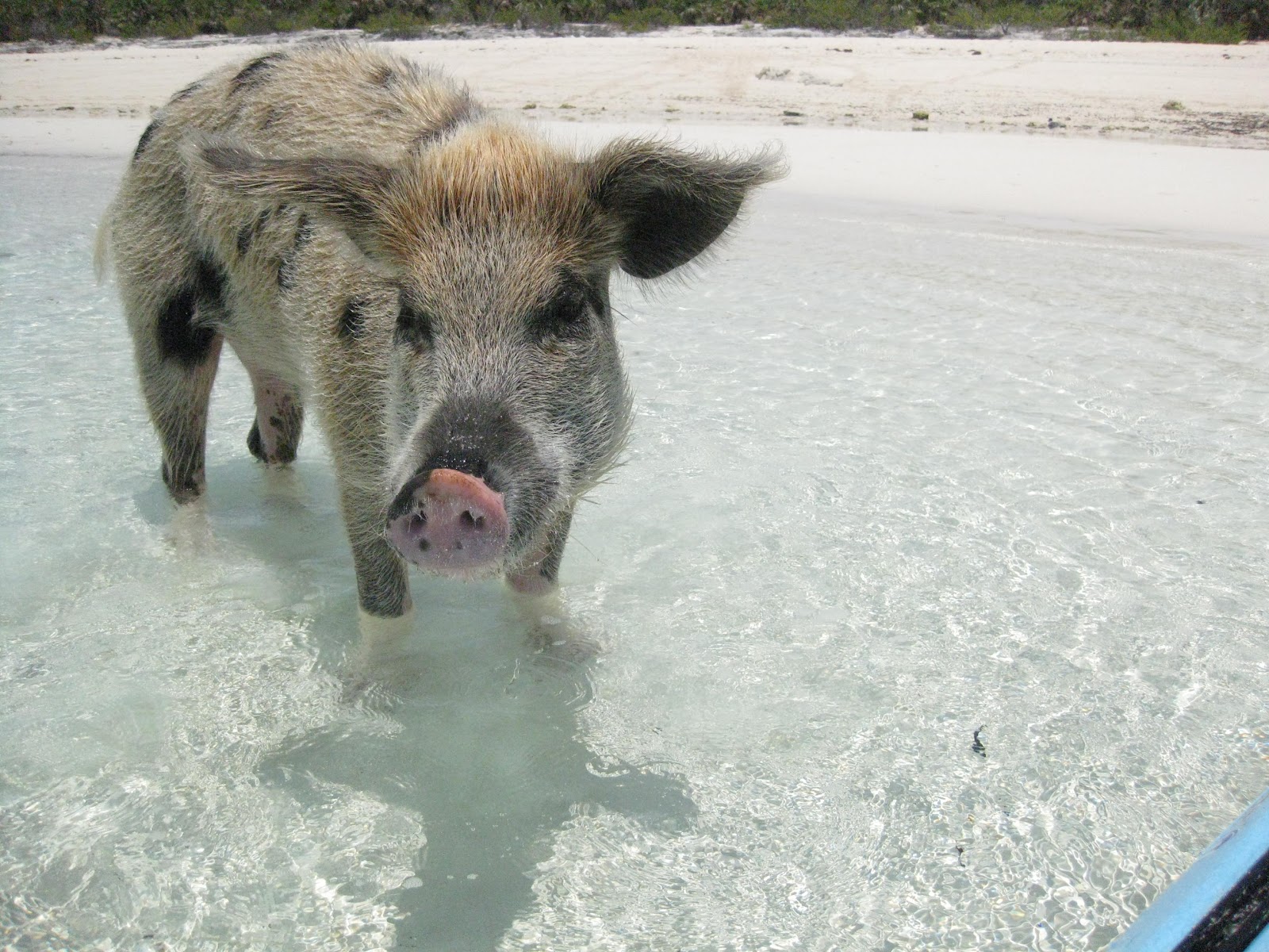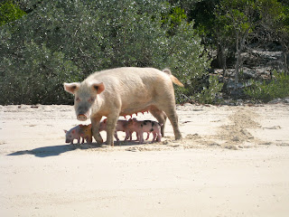 When the weather finally cleared, we headed to a lovely spot off the island of Big Majors. This is the home of what I call "pig beach". You approach the beach in your dingy y and are met by any number of wild pigs that inhabit the islands. The SWIM (yes, I said swim) out to greet you and see what goodies you have brought for them to eat. It is quite a site and they swim out quite far.